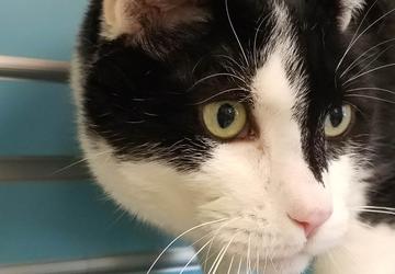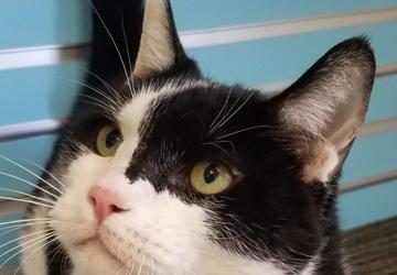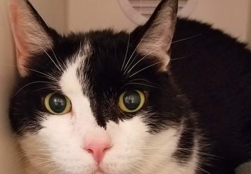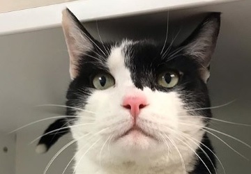 Oreo is a handsome 10-year-old tuxedo cat, who surrendered by his previous owner to the Regional Animal Services of King County (RASKC) in April 2019 because they felt that there was too much activity in the home for him to thrive.